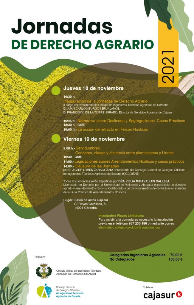 El Colegio organiza unas Jornadas Técnicas de Derecho Agrario los días 18 y 19 de noviembre.